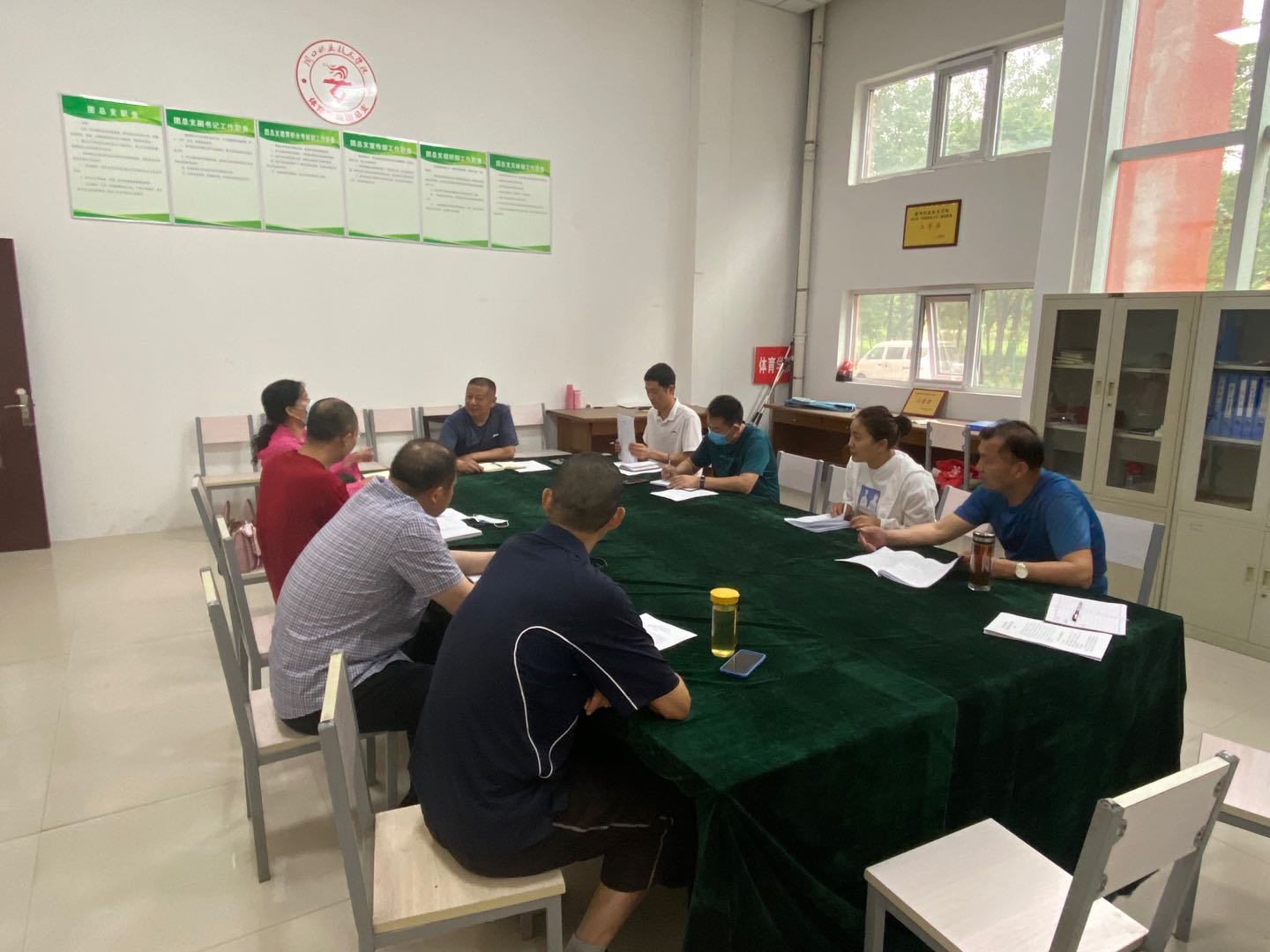 5:开学前体育设备、器材的检查、维修、购买做出相应的方案。对体育场地设施进行了规划及向学校申请场地申报内容做出了研究讨论。